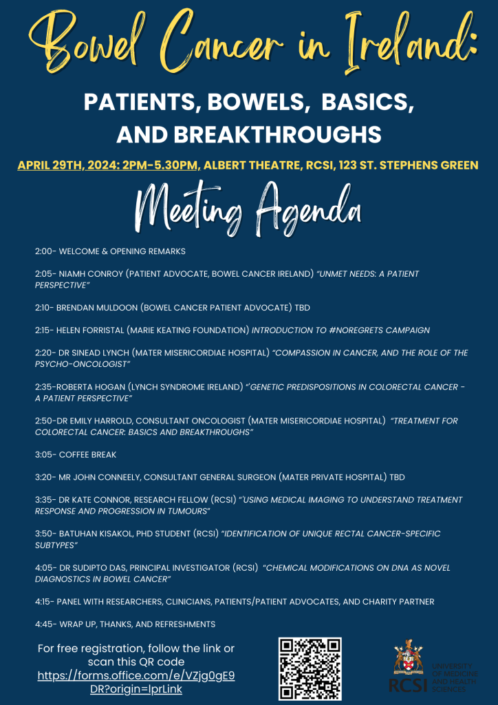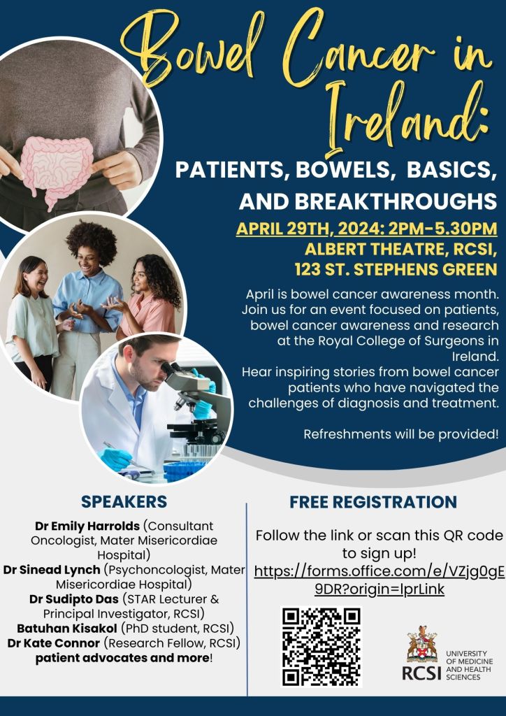 The EpiGastro group proudly presents Bowel Cancer in Ireland: Patients, Bowels, Basics, and Breakthroughs. On April 29th, join us for a discussion with patients, patient advocates, clinicians, and researchers.